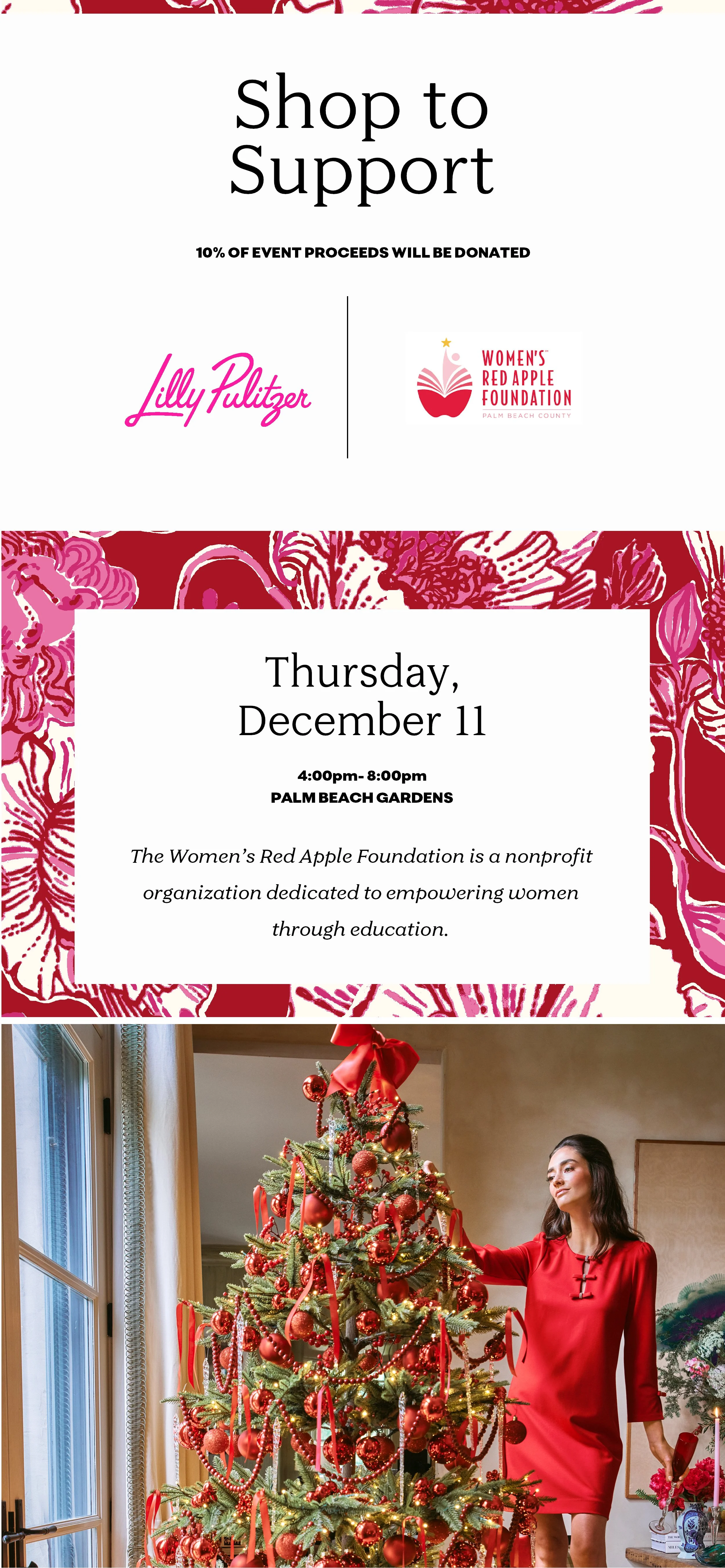 This holiday season, please join us for a Shop to Support event at Lilly Pultizer at The Gardens Mall on Thursday, December 11th from 4:00pm - 8:00pm! Make your holiday shopping have extra purpose this season - 10% of event proceeds will be donated to the Foundation.